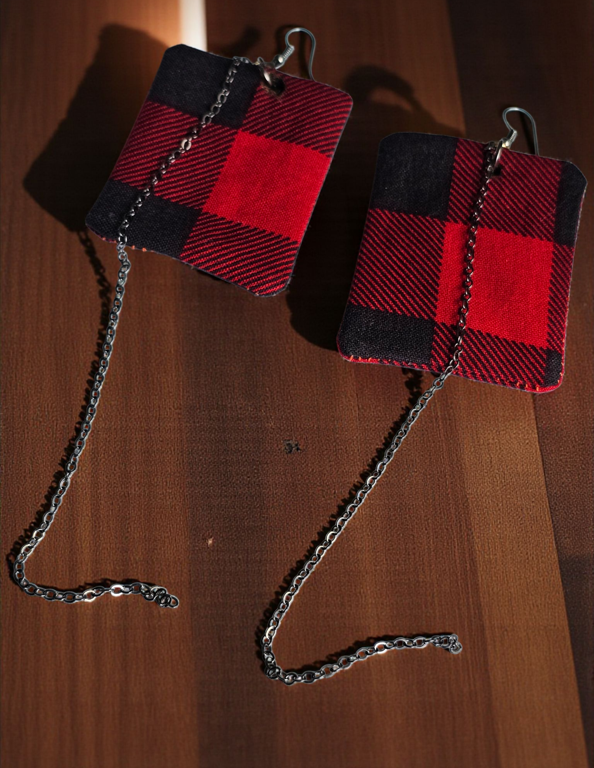 Washable, 100% African fabric print with black chain, Black/Red Earrings, SQUARE (African mix print colors as pictured)